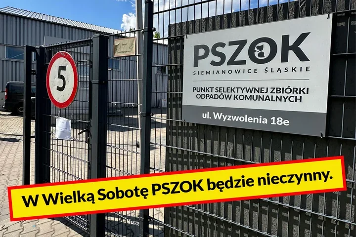 W Siemianowicach Śląskich sobotni wyjazd z odpadami do PSZOK-u okaże się niemożliwy. 4 kwietnia 2026 roku Punkt Selektywnej Zbiórki Odpadów Komunalnych będzie nieczynny, więc kto planował porządki tuż przed świętami, musi uwzględnić tę przerwę wcześniej. Urzędnicy przepraszają za utrudnienia, a mieszkańcom zostaje jedno – nie odkładać oddania odpadów na ostatnią chwilę.
